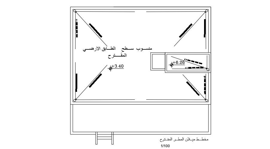 12x16m house plan rainwater slope drawing is given in this AutoCAD file. There are 4 holes are provided with the slope of 1%. For more details download the AutoCAD drawing file.