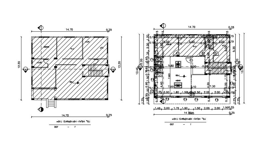 The House Floor Plan layout shows a 14x13 meter size. House Floor Plan Layout includes column placement, 2 bedrooms, living room, kitchen, dining area, and staircase is available. centerline plan is also available in this file. House Floor Plan dimensions are in a meter. Thank you for downloading the AutoCAD drawing file and other CAD program files from our website. Visit CADBULL.COM Site.