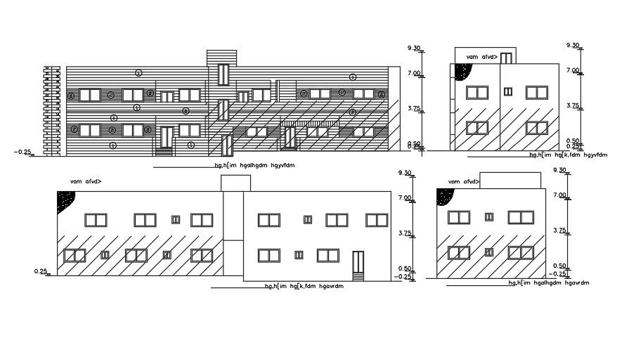 Elevations Of House Building DWG File shown in the file. House Building AutoCAD files are shown in this drawing file. The House Building elevations of the building include window and door sizes. Front Elevation Shops are available. Thank you for downloading the AutoCAD drawing file and other CAD program files from our website. Visit CADBULL.COM Site.
