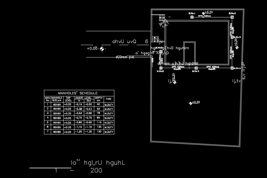 The manhole schedule of the 15x10m house plan is given in this AutoCAD drawing model. This is single story house building. The living room, kitchen, master bedroom with the attached toilet, guest room, kid’s room, drawing room, and common bathroom are available. For more details download the AutoCAD file for free from our website.