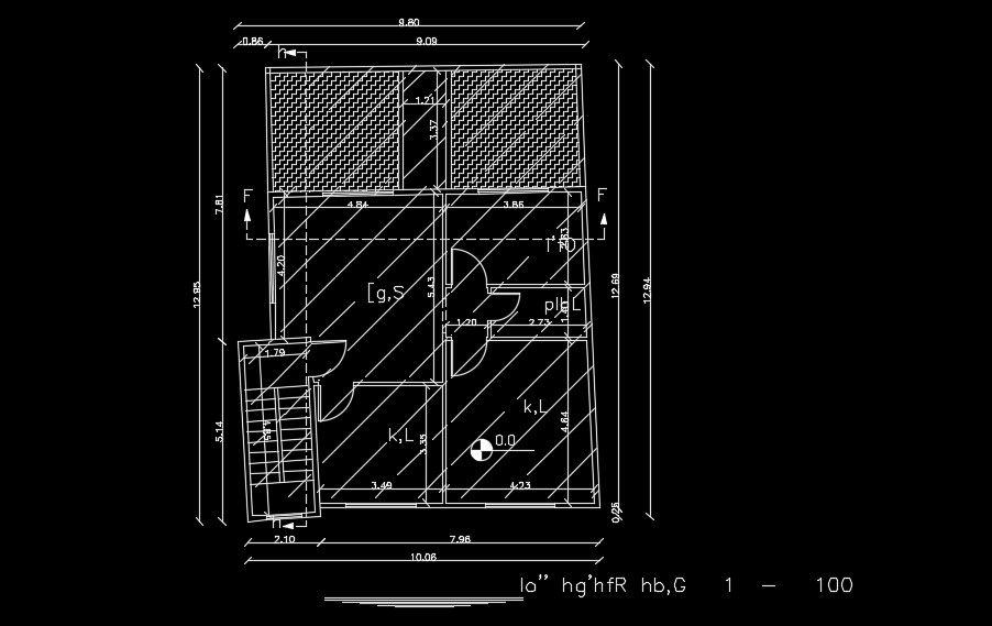 The marking layout of the 10x13m house design is given in this AutoCAD drawing model. This is G+ 3 house building. The living room, kitchen, master bedroom with the attached toilet and dressing room, guest room, kid’s room, and common bathroom are available. For more details download the AutoCAD file for free from our website.