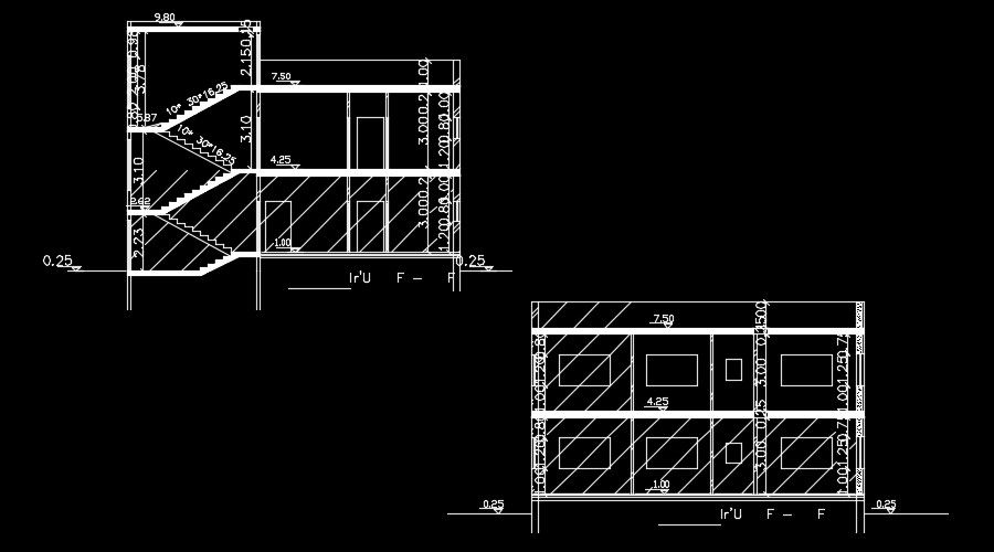 A section view of the 13x14m house building is given in this AutoCAD drawing model. This is G+ 1 house building. The living hall, kitchen, master bedroom, kid’s room, and common bathroom are available. For more details download the AutoCAD file for free from our website.