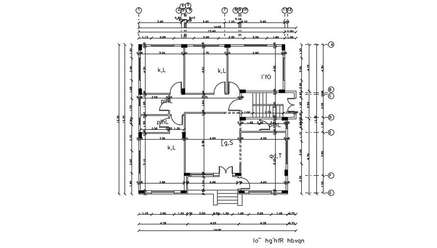 13x13m house plan column layout AutoCAD drawing is given. The distance between each column is mentioned. For more details download the AutoCAD drawing file from our website.