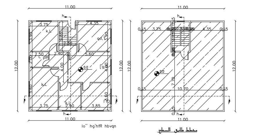 The House Floor Plan layout shows an 11x12 meter size. House Floor Plan Layout includes column placement, 2 bedrooms, living room, kitchen, dining area, and staircase is available. centerline plan is also available in this file. House Floor Plan dimensions are in a meter. Thank you for downloading the AutoCAD drawing file and other CAD program files from our website. Visit CADBULL.COM Site.
