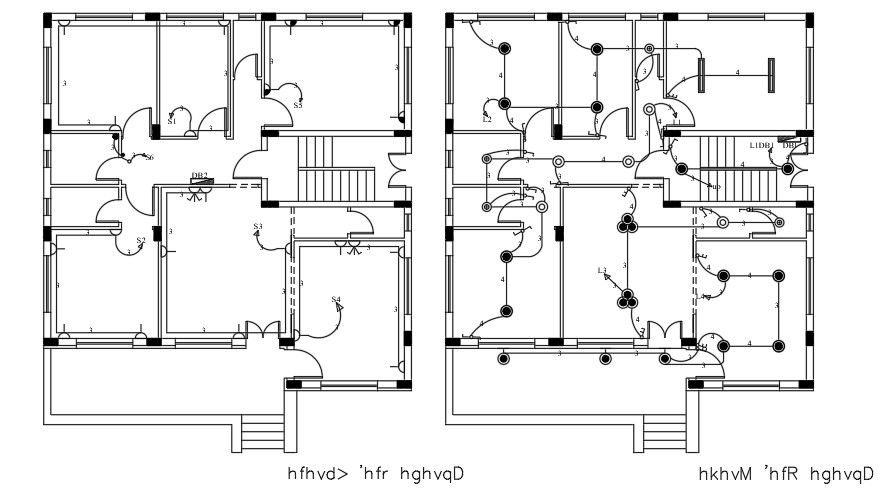 13x15m house plan electrical layout AutoCAD drawing