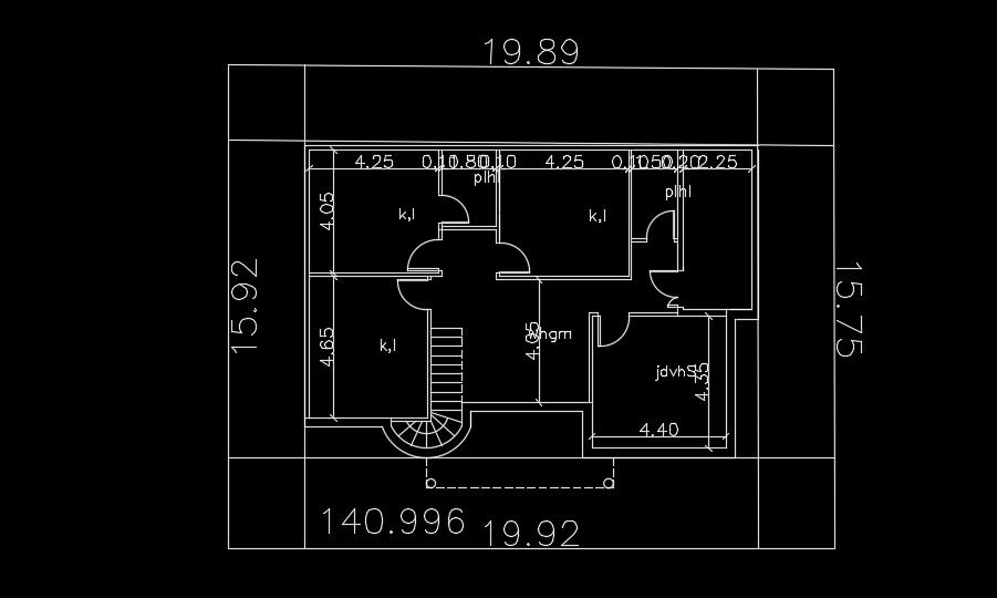 Room dimension of the 20x16m house plan is given in this AutoCAD drawing model. A staircase is provided inside a home. The living hall, dining area, master bedroom with the attached toilet, kitchen, kid’s room, and common bathroom are available. For more details download the AutoCAD file for free from our website.