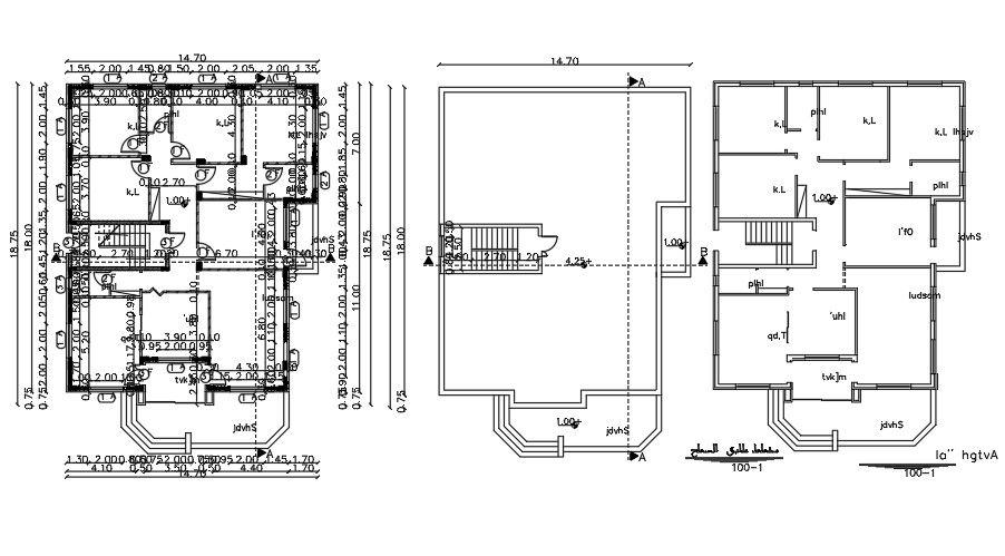 The House Floor Plan layout shows a 15x18 meter size. House Floor Plan Layout includes column placement, 3 bedrooms, living room, kitchen, dining area, and staircase is available. centerline plan is also available in this file. House Floor Plan dimensions are in a meter. Thank you for downloading the AutoCAD drawing file and other CAD program files from our website. Visit CADBULL.COM Site.
