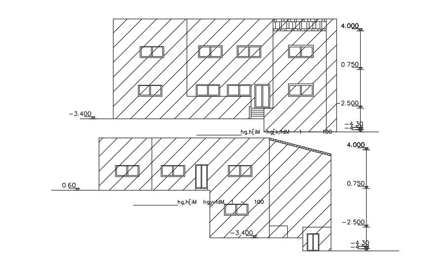 19x15m residential house building elevation view AutoCAD drawing is given in this file. The living room, kitchen, master bedroom, guest room, kid’s room, and common bathroom are available. On the ground floor, 2bhk house is available. 3bhk houses are available on the first floor. For more details download the AutoCAD drawing file from our website.
