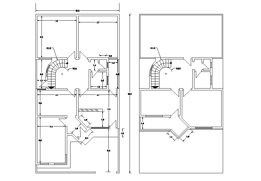 The 4 BHK House Floor Plan layout shows a 10x18 Meter size. House Floor Plan Layout includes column placement, 4 bedrooms, living room, kitchen, dining area, and staircase is available. centerline plan is also available in this file. House Floor Plan dimensions are in a meter. Thank you for downloading the AutoCAD drawing file and other CAD program files from our website. Visit CADBULL.COM Site.