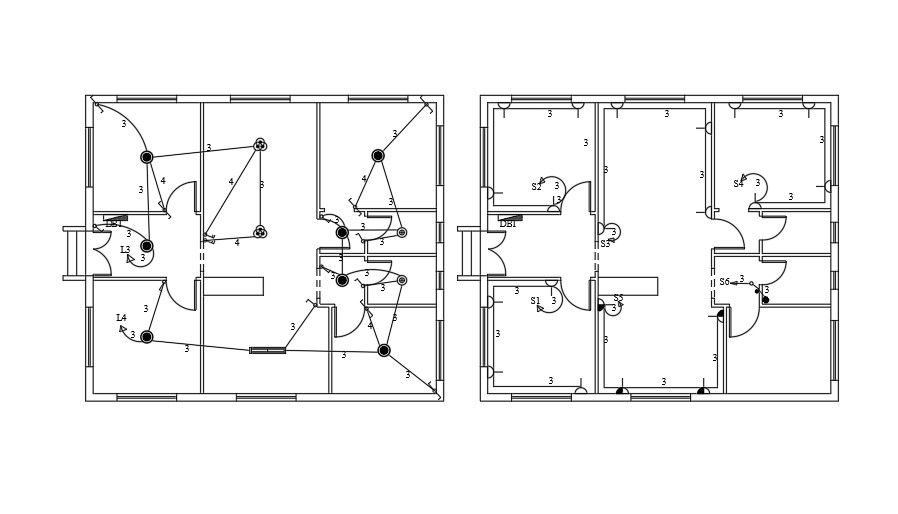 12x10m house plan of the electrical drawing is given in this AutoCAD file. Switch point and light locations are mentioned in this drawing. The living room, master bedroom with the attached toilet, kid’s room, kitchen, guest room, and common bathroom are available. For more details download the AutoCAD drawing file from our website.