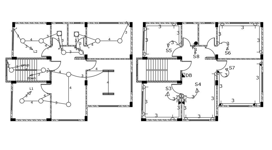 13x11m house plan electrical AutoCAD drawing is given in this file. Switch point and light fixing location drawing is given in the model. For more details download the AutoCAD drawing file from our website.