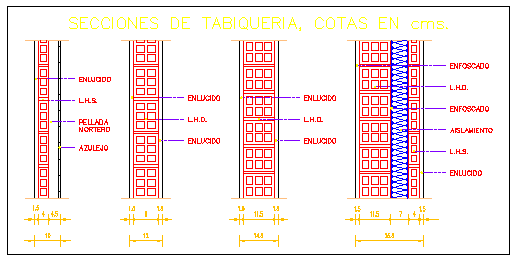 Here the Section drawing of Types of partitions design drawing with all types of detailing mentioned in this auto cad file.