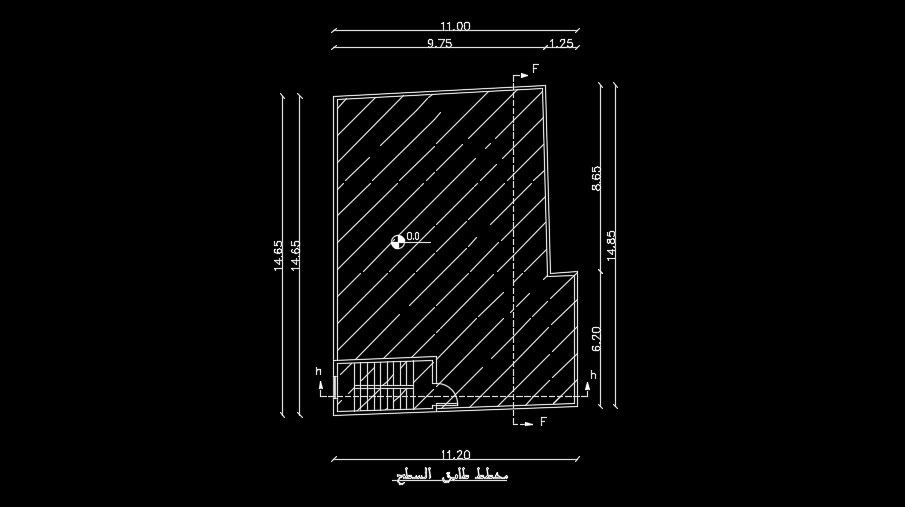The roof layout of the 11x15m house plan is given in this AutoCAD drawing model. The living hall, kitchen, master bedroom, kid’s room, guest room, drawing room, and common bathroom are available. For more details download the AutoCAD file for free from our website.