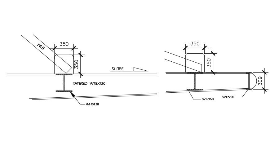 Tapered section view 2D AutoCAD drawing is given in this file. I section is provided. The dimension of the I sections are mentioned in this drawing. For more details download the AutoCAD drawing file from our website.