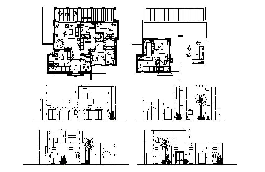 The residence house 3 BHK house plan CAD drawing shows 16x13 meter plot size with all furniture detail, The 3 BHK modern house plan includes 3 bedrooms, dining area, living room, kitchen, sitting area, and parking in dwg file. roof detail is shown in this file. Elevations and sections are also shown in the 3 BHK House Plan. Thank you for downloading the AutoCAD drawing file and other CAD program files from our website. Visit CADBULL.COM Site.
