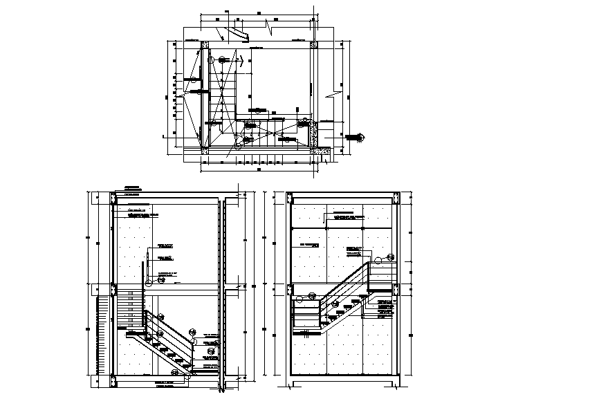 Stair Case Plan, Section And Elevation AutoCAD File