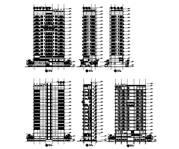 Elevations And Sections Of the 31x12 Meter Apartment AutoCAD drawing are in this file. The Apartment building section drawing and elevation design include G+10 story floor level building model design, door window marking, and main entrance gare with all dimension detail. Thank you for downloading the Autocad drawing file and other CAD program files from our cadbull website.