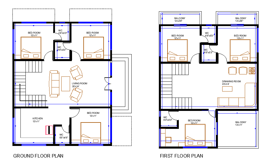 30'x38' 6 BHK House AutoCAD Plan Layout File