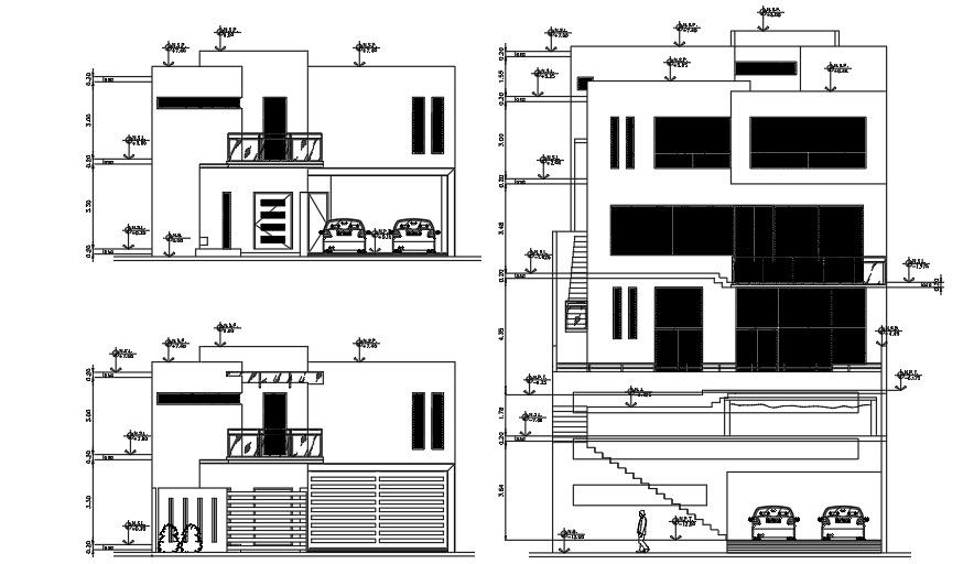 Elevations Of 10x13 Meter House Building DWG File shown in the file. the front elevation left elevation and Back Elevation Of the Building AutoCAD File are shown in this drawing file. The front elevation and back elevation of the building includes window and door sizes. Thank you for downloading the AutoCAD drawing file and other CAD program files from our website. Visit CADBULL.COM Site.