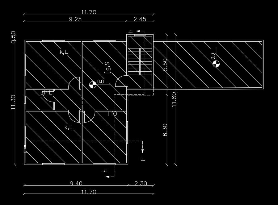 22x11m first floor house plan AutoCAD drawing is given in this file. The living room, kitchen, master bedroom, kid’s room, parking shed, and common bathroom are available on the first floor. For more details download the AutoCAD drawing file from our website.