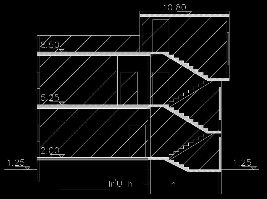 A section view of the 22x11m house building is given in this AutoCAD drawing model. The total height of the building is 10.8m. This is G+ 1 house building. For more details download the AutoCAD drawing file from our website.