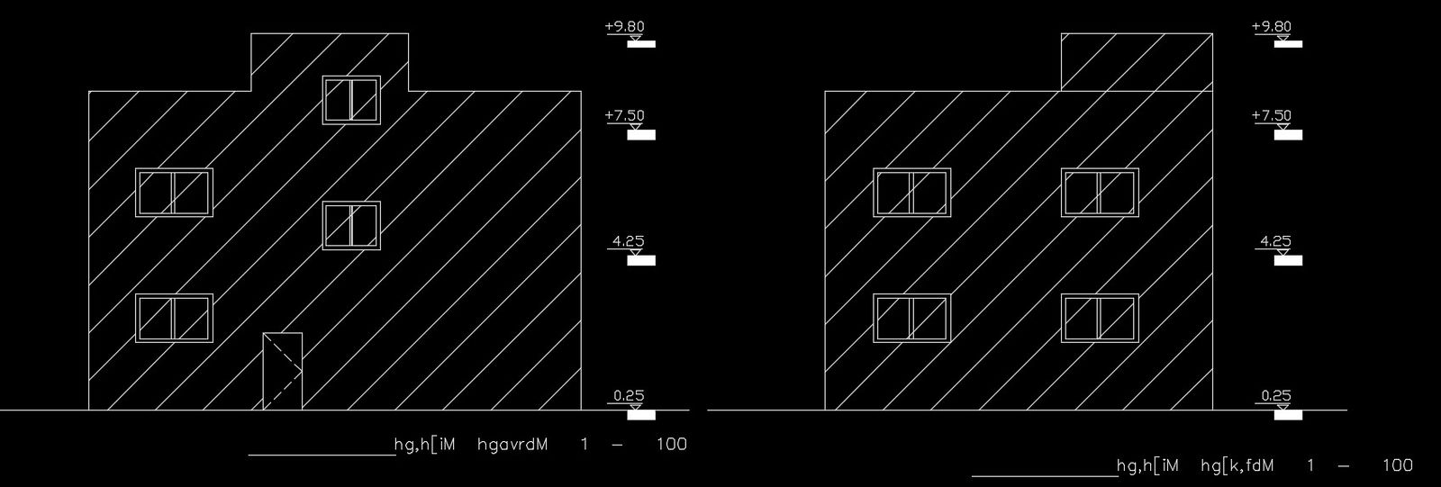 An elevation view of the 10x13m house building is given in this AutoCAD file. The total height of the building is 9.8m. This is G+ 1 house building. The living room, kitchen, master bedroom with the attached toilet, kid’s room, guest room, and common bathroom are available. For more details download the AutoCAD drawing file from our website.