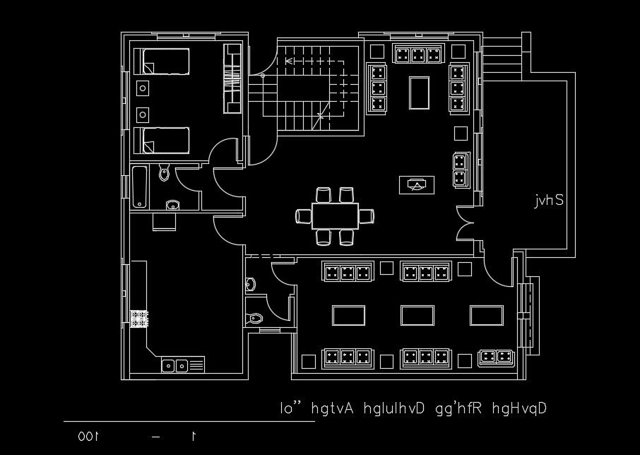 14x12m ground house plan furniture’s layout AutoCAD drawing is given in this file. The living room, kitchen, family lounge area with attached toilet, master bedroom with the attached toilet, and other details are given. The staircase is provided inside of the house. For more details download the AutoCAD drawing file from our website.