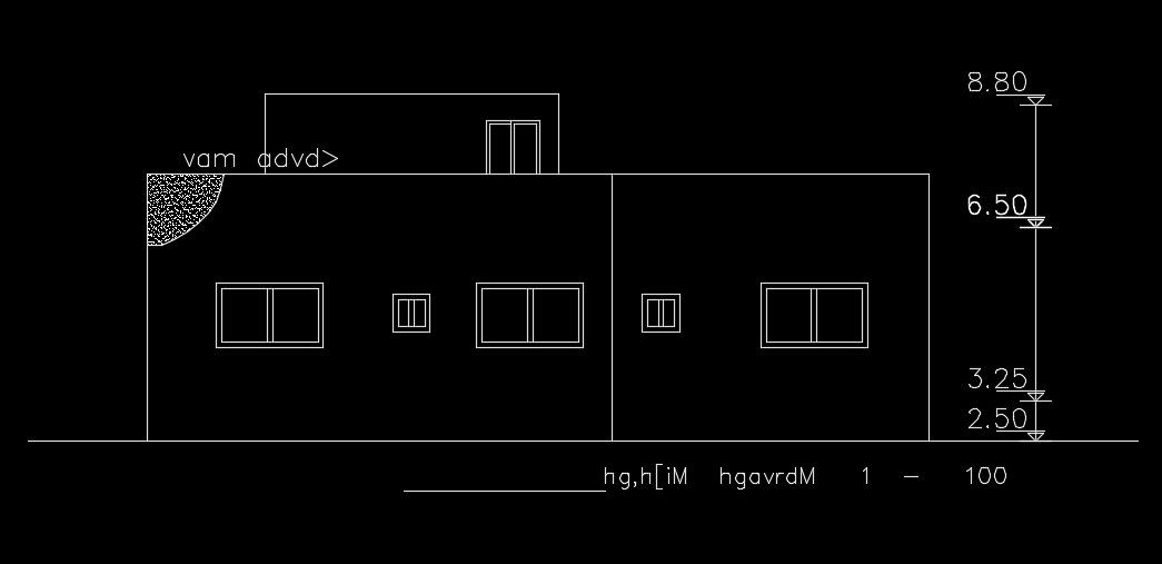 The left side elevation view of the 30x15m twin house plan building AutoCAD drawing is given in this file. This is a single story house building. The total height of the building is 8.8m including water tank. This is a 3bhk house plan. On each house, the living room, kitchen, family lounge area with attached bathroom, master bedroom with the attached toilet, kid’s room, guest room, and common bathrooms are available. For more details download the AutoCAD drawing file from our website.