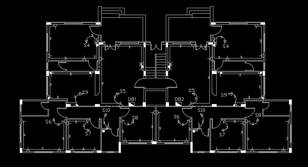 30x15m twin house plan switch point location drawing is given in this AutoCAD file. This is a 3bhk house plan. On each house, the living room, kitchen, family lounge area with attached bathroom, master bedroom with the attached toilet, kid’s room, guest room, and common bathrooms are available. For more details download the AutoCAD drawing file from our website.
