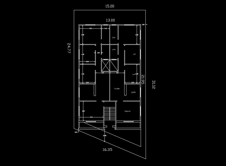 13x22m 2D architecture house plan drawing is given in this file. The length and breadth of the site layout is 15m and 25m respectively. For more details download the AutoCAD drawing file from our website.