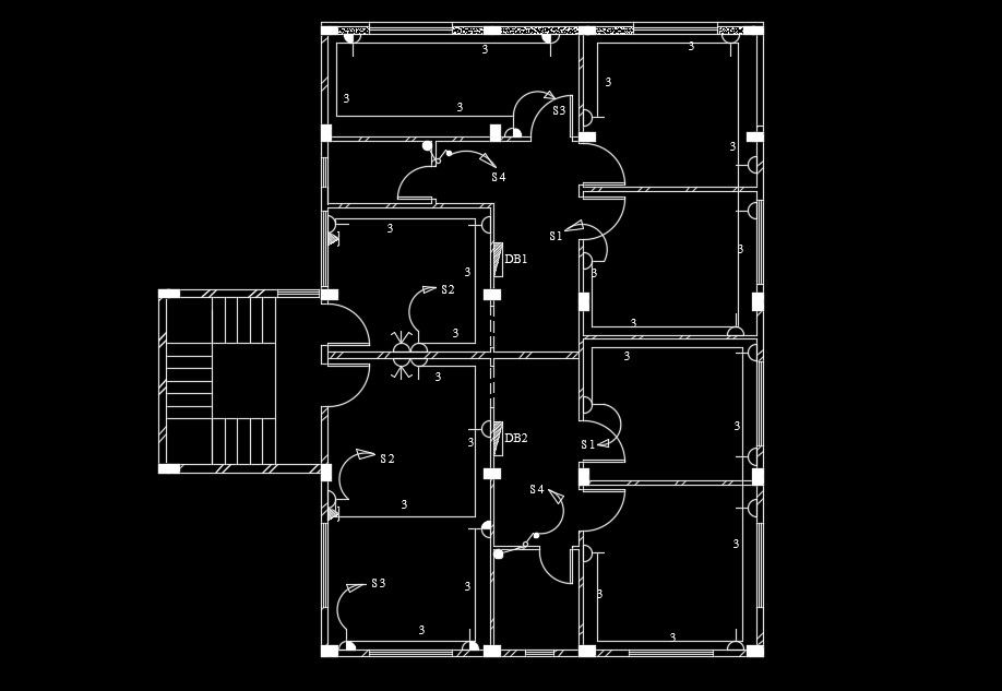 11x15m house plan switch point location AutoCAD drawing is given in this file. Two houses are available on this second floor. The living room, kitchen, master bedroom, kid’s room, and common bathrooms are available. For more details download the AutoCAD drawing file from our website.