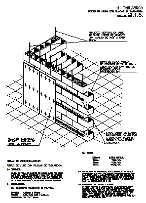 Detail wall of block with stone board design drawing