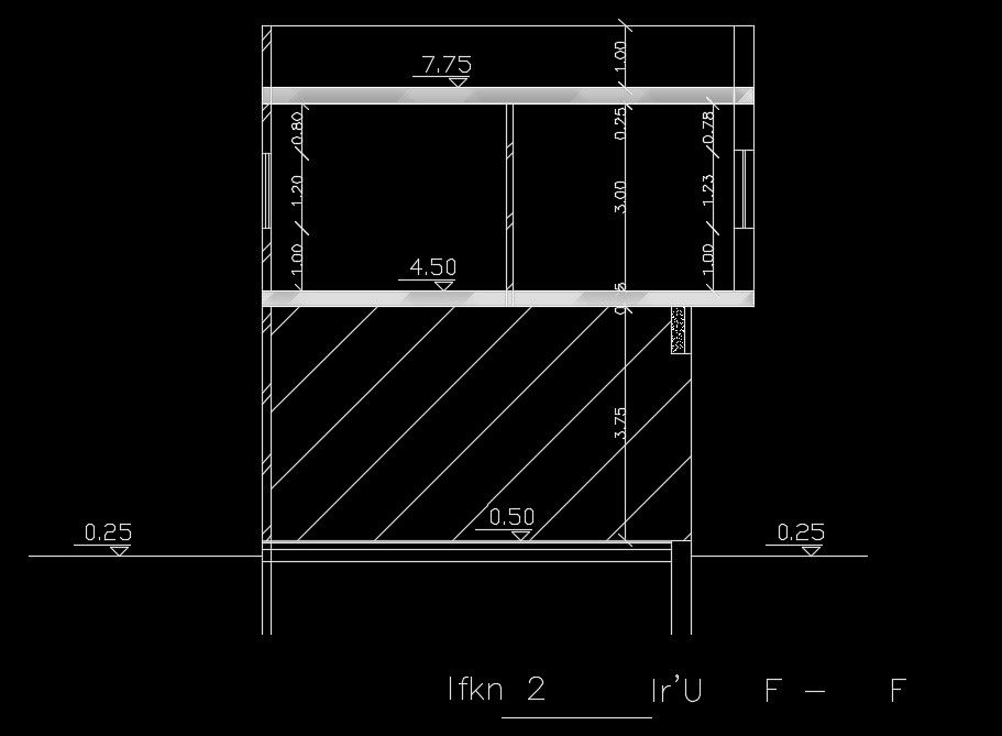 The back side section view of the 20x12m house building is given in this AutoCAD file. The total height of the building is 10.05m. This is G+ 1 house building. For more details download the AutoCAD drawing file from our website.