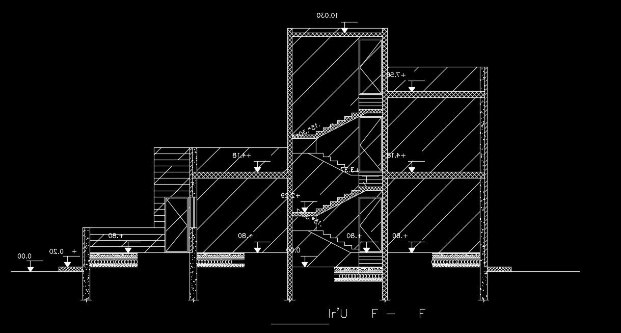 The front section view of the 20x15m house building is given in this AutoCAD file. The total height of the building is 10.03m. This is G+ 1 house building. For more details download the AutoCAD drawing file from our website.