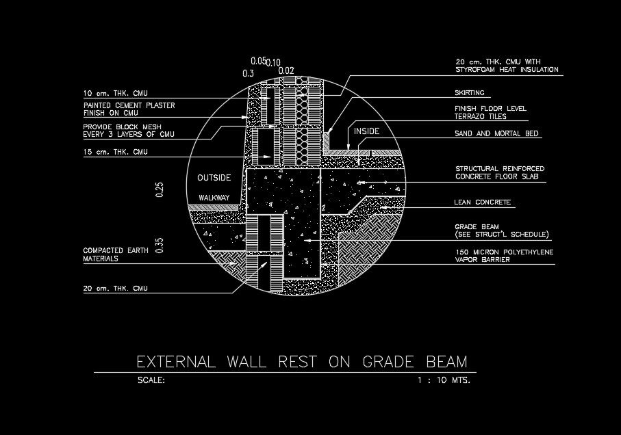 External wall on grade beam AutoCAD drawing