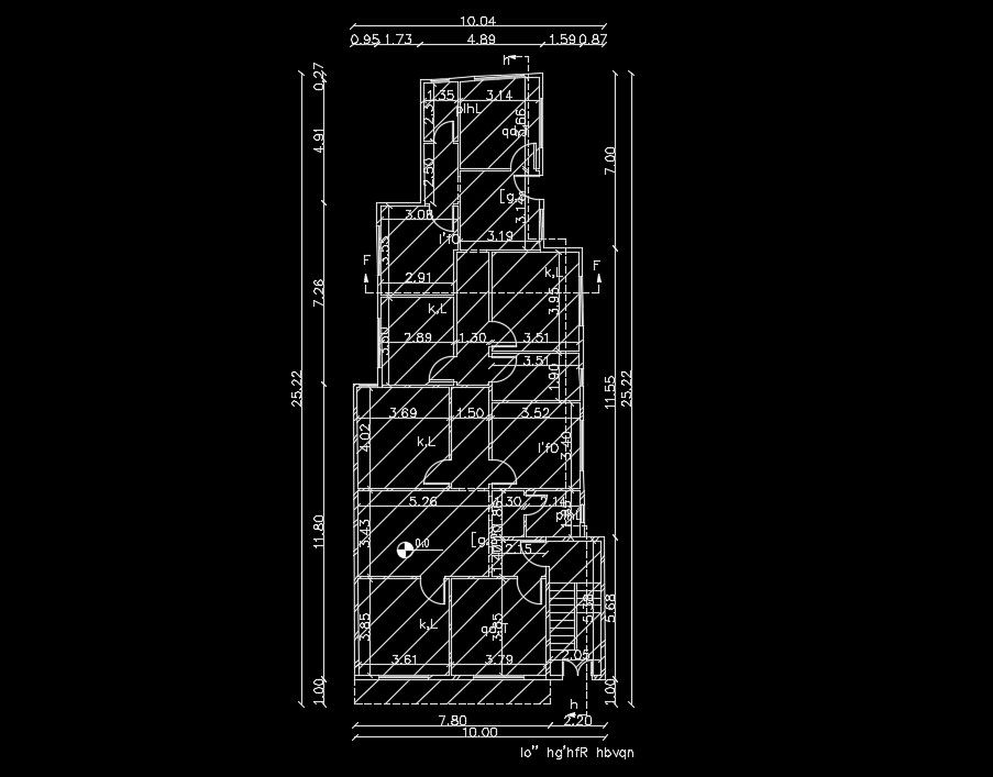 10x25m ground floor house plan AutoCAD drawing is given in this file. This is G+ 3 house building. The living room, master bedroom with attached toilet, two kid’s room, guest room, dining area, kitchen, and two common bathrooms are available. For more details download the AutoCAD drawing file from our website.