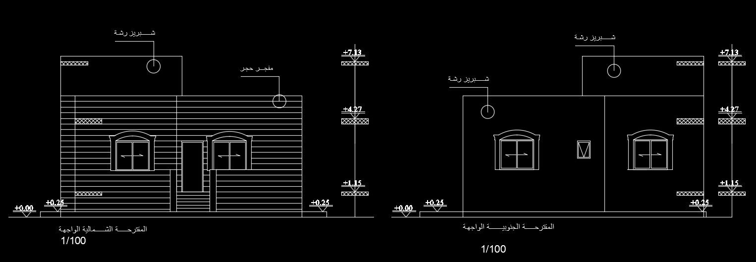 The left and right side elevation view of the 16x21m house building is given in this AutoCAD file. The total height of the building is 7.13m. This is a single story building. For more details download the AutoCAD drawing file from our website.