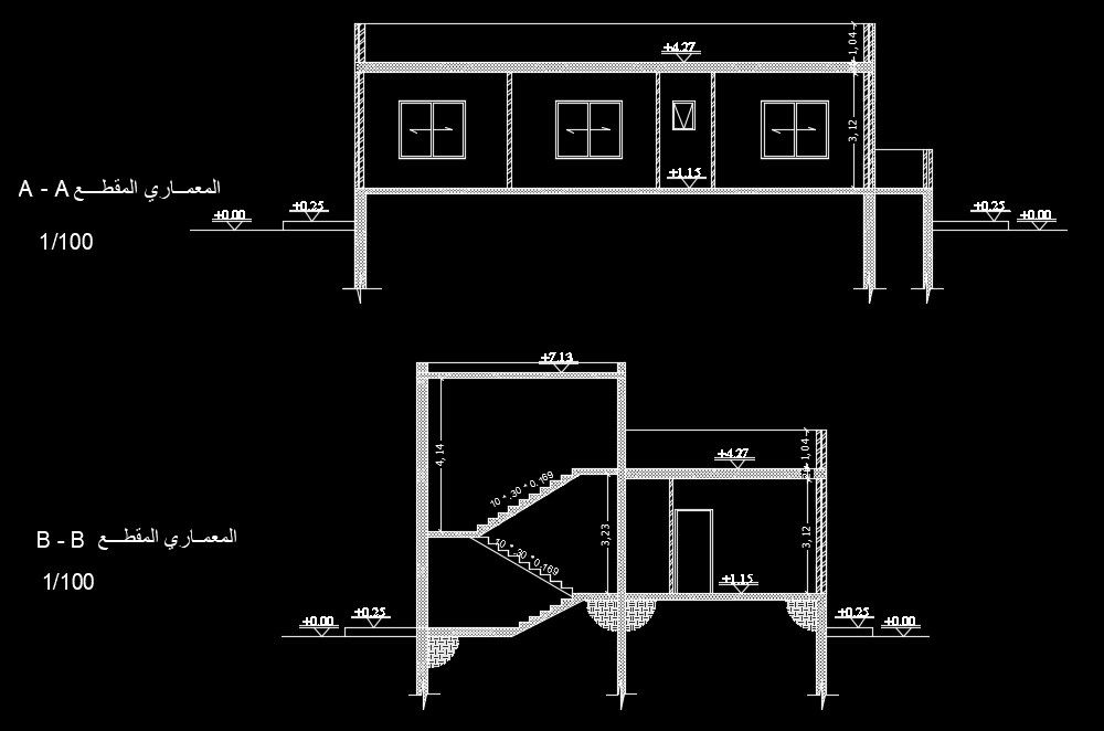 A section view of the 16x21m house building is given in this AutoCAD file. The total height of the building is 7.13m. This is a single story building. For more details download the AutoCAD drawing file from our website.