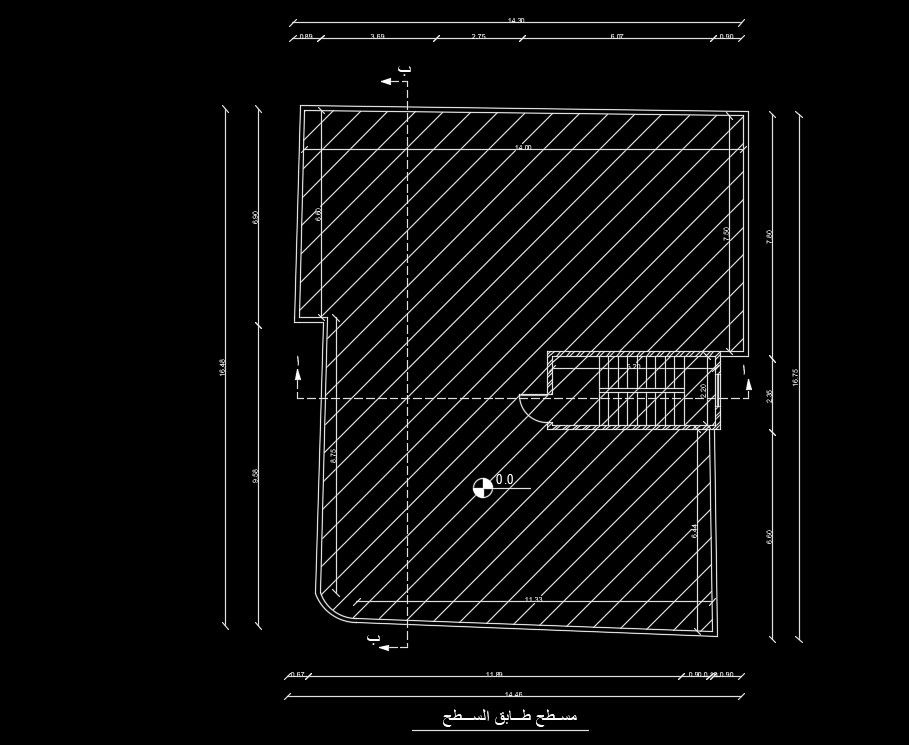 14x17m house plan roof layout AutoCAD drawing is given in this file. The length and breadth of the staircase are 5.7m and 2.3m respectively. For more details download the AutoCAD drawing file from our website.