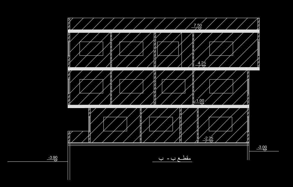 14x17m house building left side section view is given in this AutoCAD drawing file. This is G+ 2 house building. The total height of the building is 9.8m. For more details download the AutoCAD drawing file from our website.