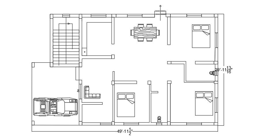 50x30 Feet 3 BHK AutoCAD Plan Layout File