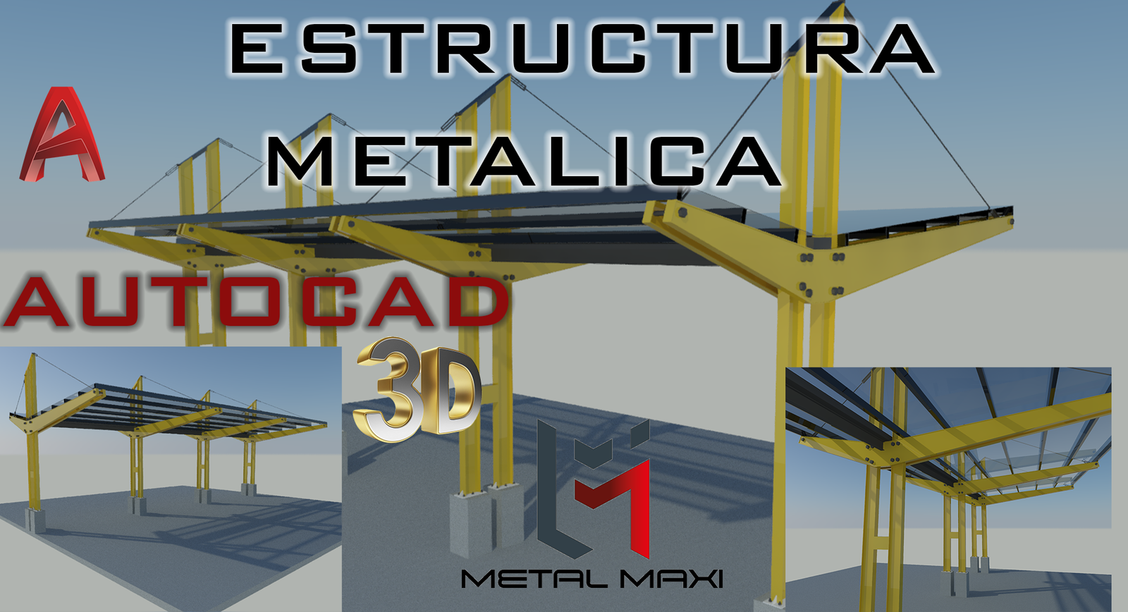 cubierta metálica modelado en AutoCAD 3d para un parqueo , con detalles de anclajes y tensores , esta en una versión de AutoCAD 2021
