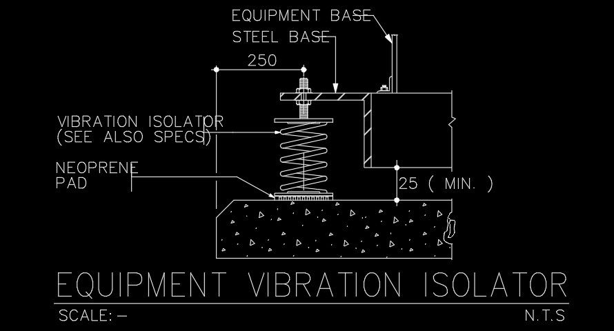 Equipment vibration isolator AutoCAD drawing is given in this file. Equipment base, steel base, vibration isolator, neoprene pad, and dimension details are mentioned. For more details download the AutoCAD drawing file from our cadbull website.