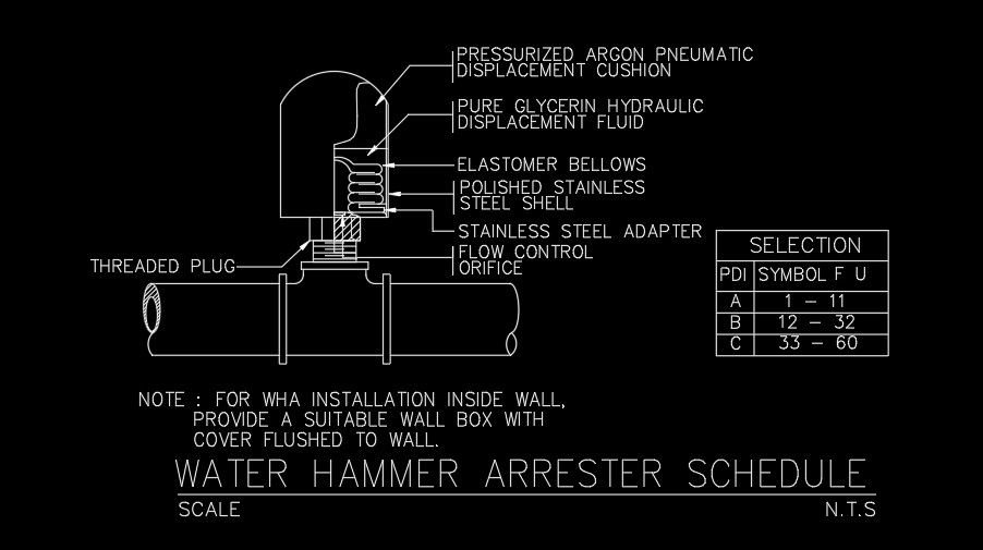 Water Hammer Arrester AutoCAD Schedule DWG Drawing for Plumbing