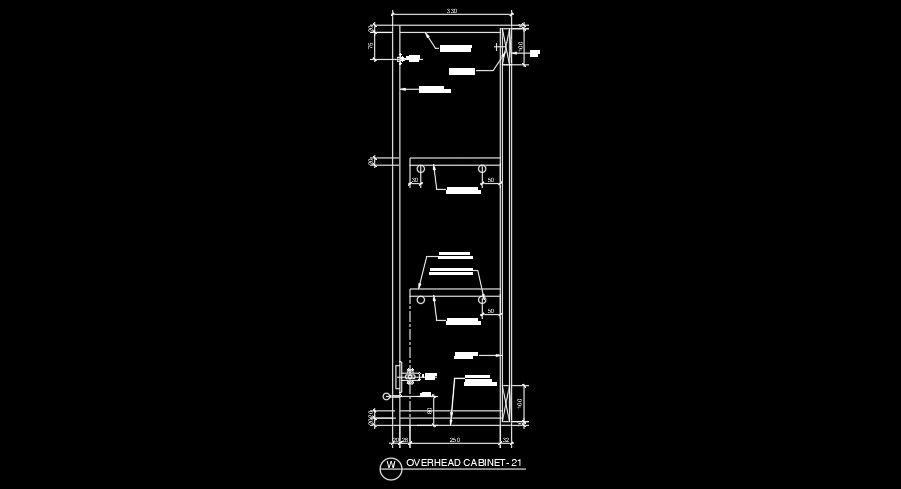 The overhead cabinet section view is given in this AutoCAD file. The material details and dimension details are given which is used for the cabinet. For more details download the AutoCAD drawing file from our cadbull website.
