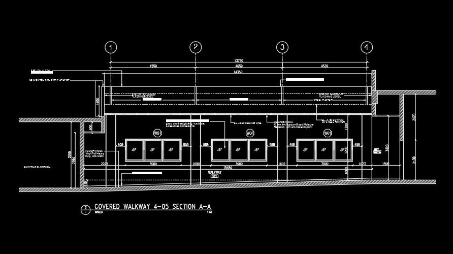 A covered walkway section AutoCAD drawing is given in this file. The breadth of the walkway is 4.7m. For more details download the AutoCAD drawing file from our cadbull website.