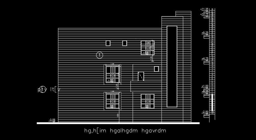 17x17m house building right side elevation view is given in this AutoCAD file. This is G+ 1 house building. The total height of the building is 11.35m including water tank. The living room, home theatre room, master bedroom with the attached toilet, kid’s room, guest room, family lounge area, and common bathroom are available. For more details download the AutoCAD drawing file from our cadbull website.