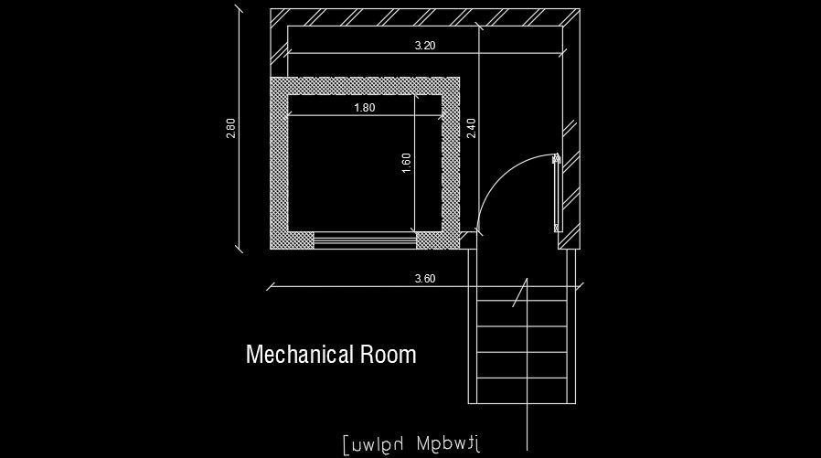 3600x2800mm mechanical room plan AutoCAD drawing is given in this file. The entrance is provided at the right side front corner. One window is provided. For more details download the AutoCAD drawing file from our cadbull website.