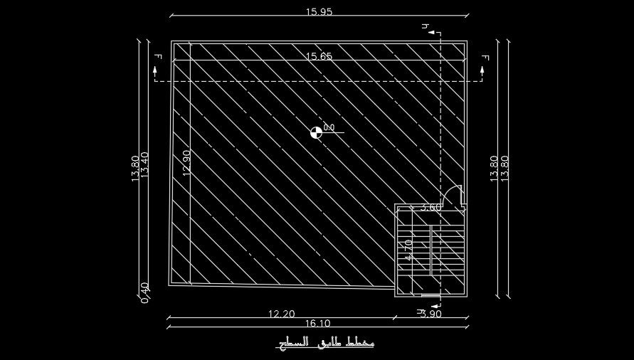 16x14m residential house plan roof layout AutoCAD drawing is given in this file. This is a single story house building. The length and breadth of the staircase are 3.6m and 4.7m respectively. For more details download the AutoCAD drawing file from our cadbull website.