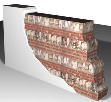 Wall of stone and brick colonial design